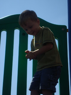 Gavin's final big accomplishment this week was he finally figured out how to go across the monkey bars! So we went out to the playground and he showed us how it's done and then the boys played for a little bit.